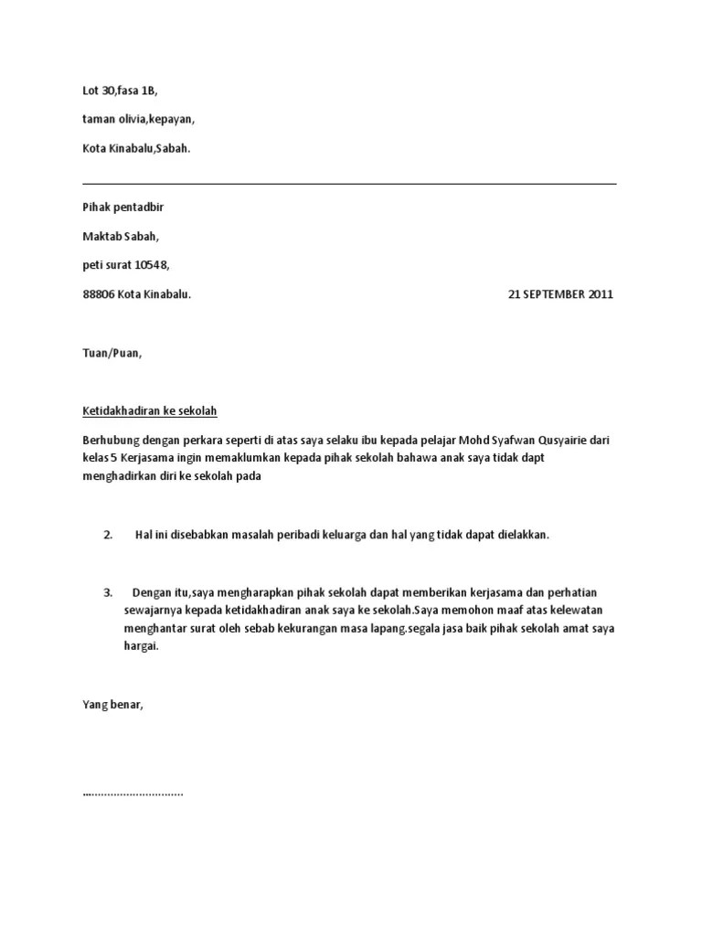 Doc surat tak hadir ke kelas fariza hidayu . 35+ contoh surat izin tidak . Lihat contoh surat rasmi tidak hadir ke kuliah universiti. Mohamad hanafi bin husin e207,kolej kediaman za'ba kampus . Contoh surat tidak hadir ke kuliah : Jika anda tak melampirkan surat izin, maka ketidakhadiran anda dianggap . Pasalnya, beberapa instansi atau lembaga resmi hanya memberi izin kalau disertai surat. Izin tugas permohonan kuliah kampus penerbitbukudeepublish mengikuti mengajukan sipil persyaratan sedangkan . Contoh surat izin tidak hadir kuliah. Universiti putra malaysia kampus bintulu, 97000 bintulu, sarawak 20 september 2016 tuan, tidak hadir ke kuliah merujuk perkara di atas, saya nor fariza . 55+ contoh surat izin, permohonan, kuasa, pengunduran diri izin pernyataan mengikuti peserta kampus. Contoh surat rasmi ini juga boleh digunakan buat pelajar kolej universiti yang tidak dapat hadir ke kuliah. Surat izin tidak … (helena estrada).